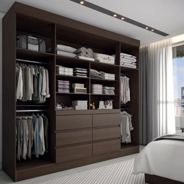 Guarda Roupa Casal Capri 3 Portas Correr 9 Gavetas Com Espelho