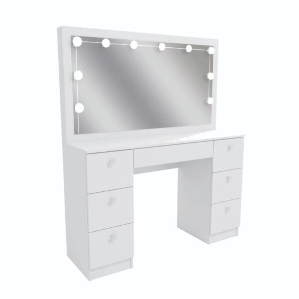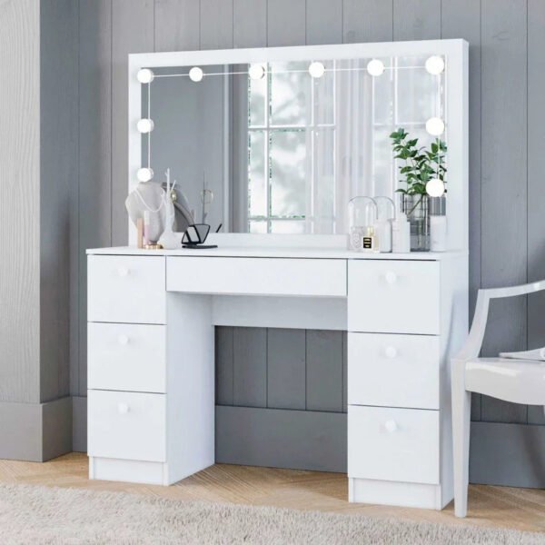 Penteadeira Camarim 7 Gavetas com Espelho e Kit LED Profissional - 100% MDF Branco [Iluminação 3 Tons]