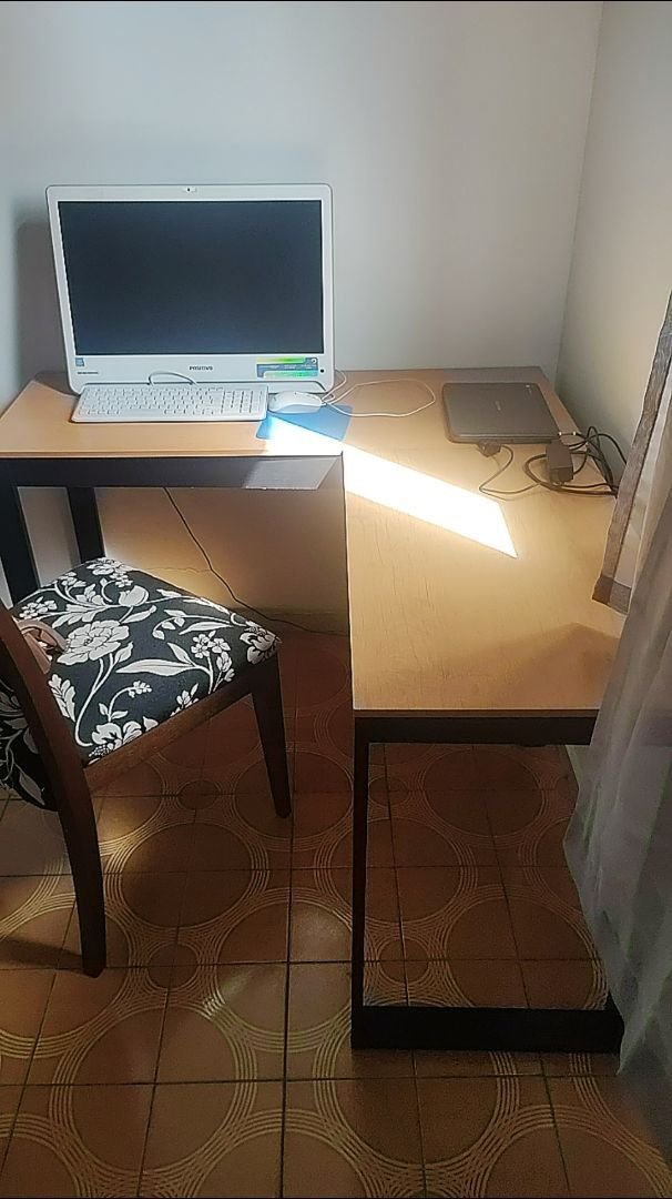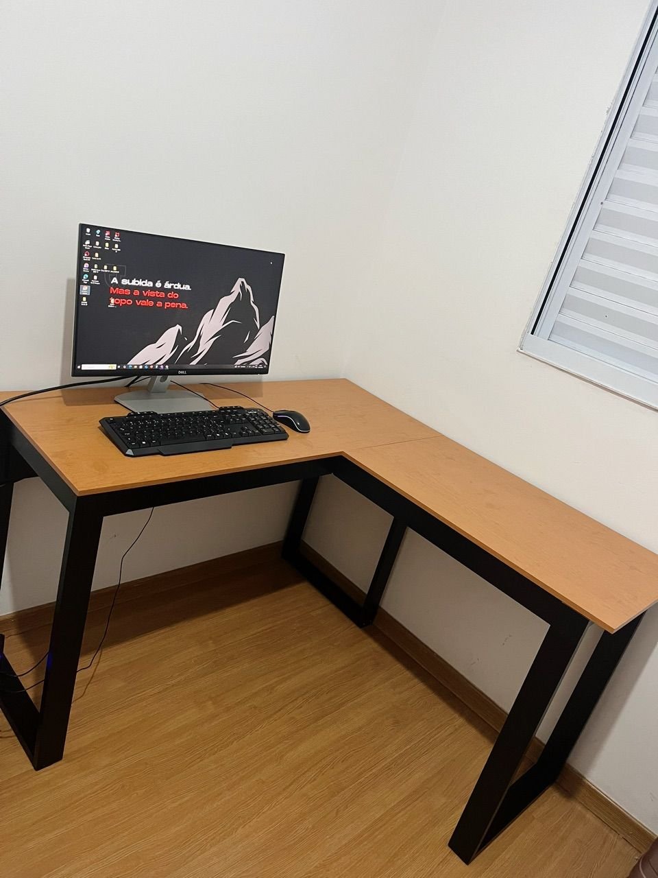 Formato em L (Canto): Multiplica sua área de trabalho. Você pode usar um lado para o computador ou notebook e o outro para cadernos, livros ou impressora, mantendo tudo ao alcance das mãos.