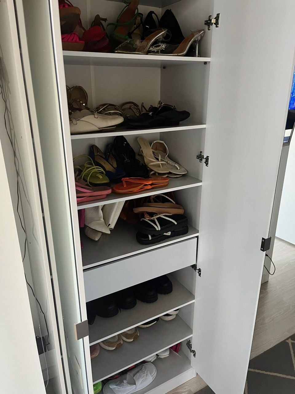 Esta sapateira é o móvel inteligente que faltava na sua casa. Unindo a funcionalidade de um organizador de calçados com a utilidade indispensável de um Espelho de Corpo Inteiro, ela otimiza espaço e valoriza a decoração do ambiente.