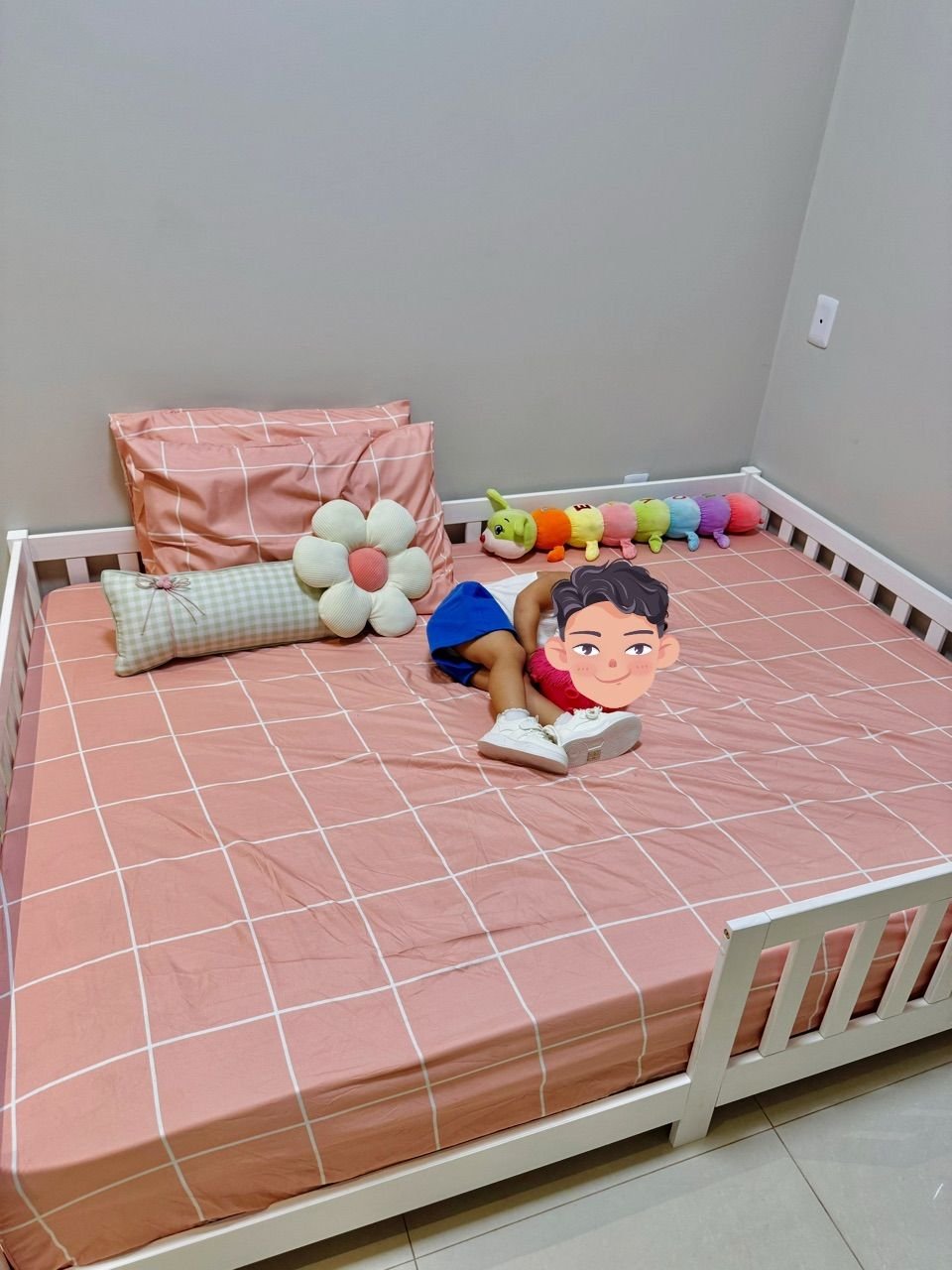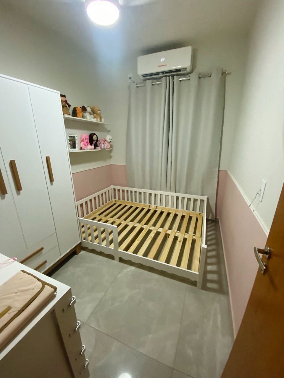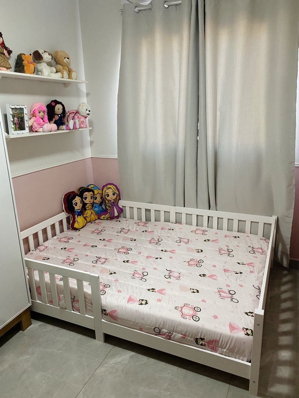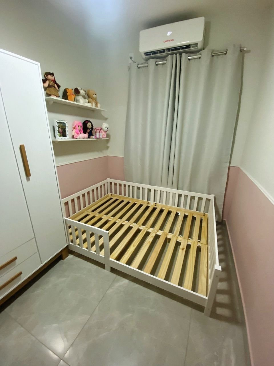 • Autonomia Montessori: O colchão próximo ao chão permite que a criança explore seu quarto com liberdade e segurança, sem o risco de quedas de altura.