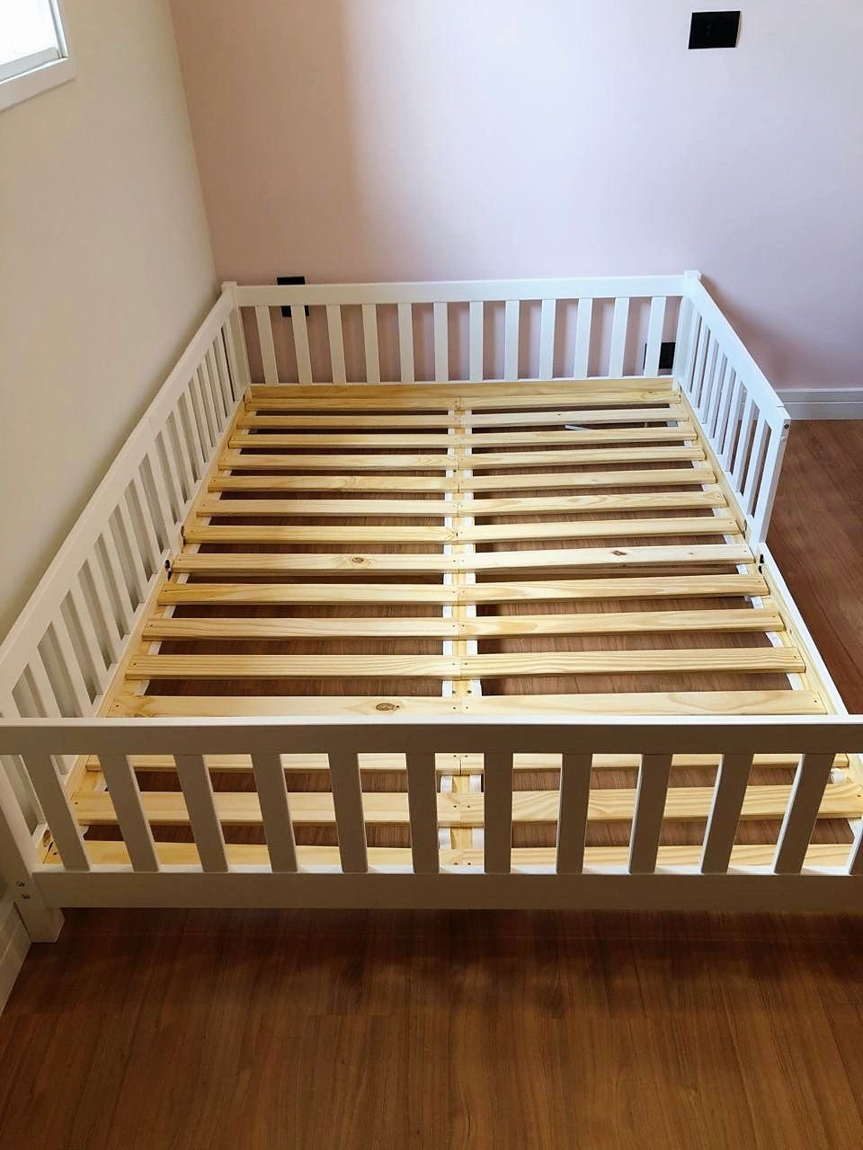 Cama Montessoriana Casal com Grade Eva - 100% Madeira Maciça Branca [Suporta 220kg]