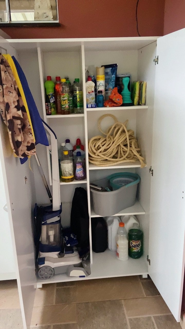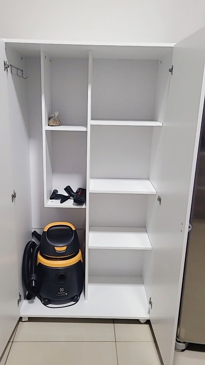 O Armário Multiuso Renassenza com Rodízios foi projetado para resolver a falta de espaço em qualquer cômodo. Com profundidade generosa de 46cm, ele não serve apenas para vassouras; ele foi feito para guardar eletrodomésticos, caixas organizadoras pesadas e mantimentos.