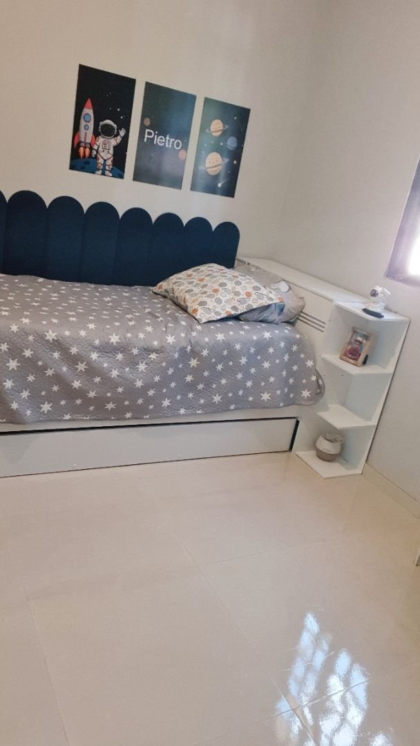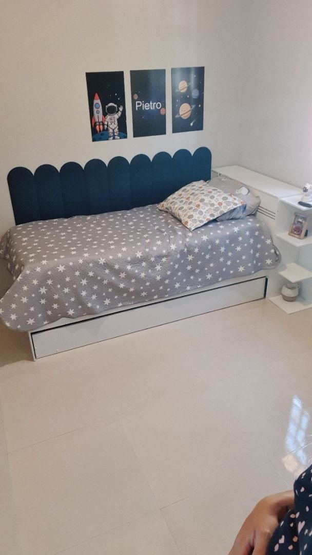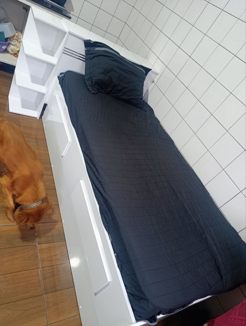 4 Móveis em 1: Cama de Solteiro + Cama Auxiliar (Bicama) + Cômoda (2 Gavetas) + Baú (Cabeceira). Tudo isso ocupando o espaço de apenas uma cama tradicional.