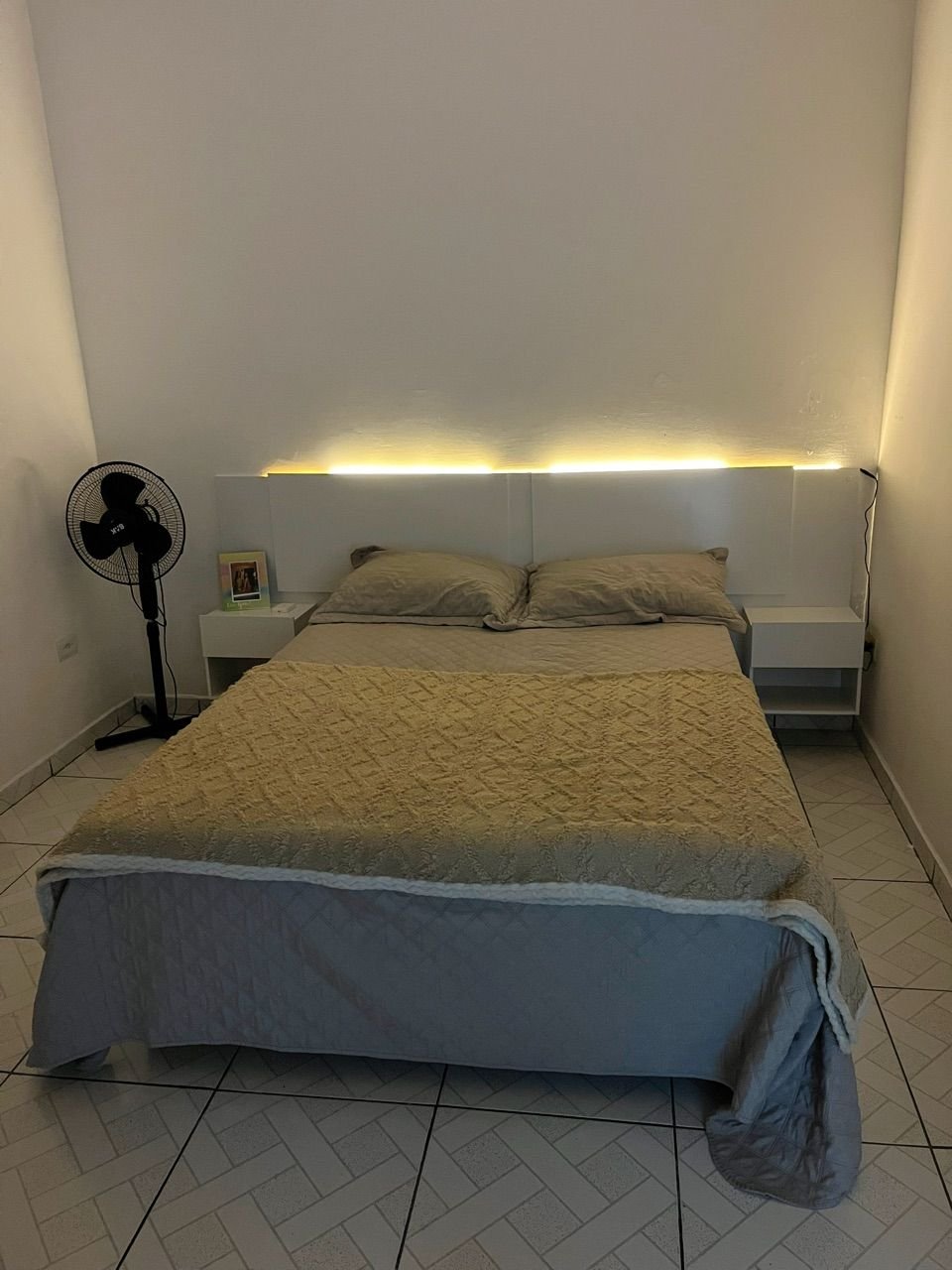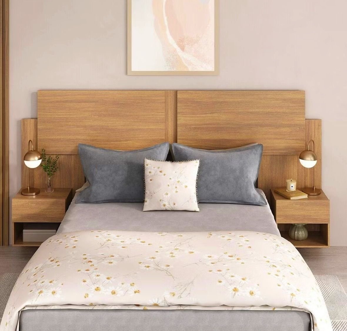 2 Mesas de Cabeceira Acopladas: Cada lado possui um módulo suspenso com gaveta e nicho. Perfeito para apoiar abajur, celular, livros e organizar itens pessoais.