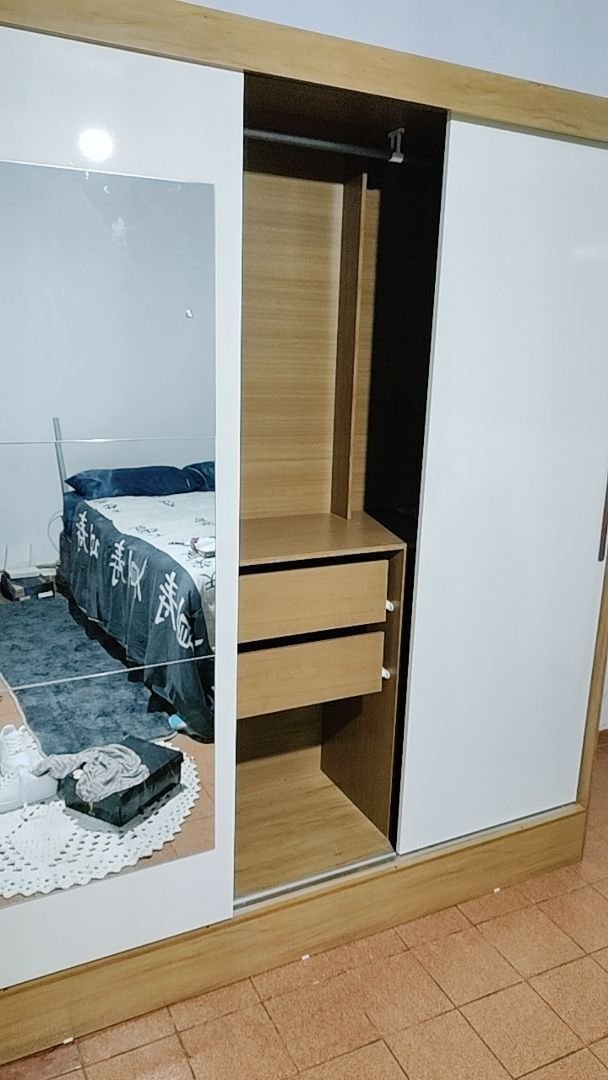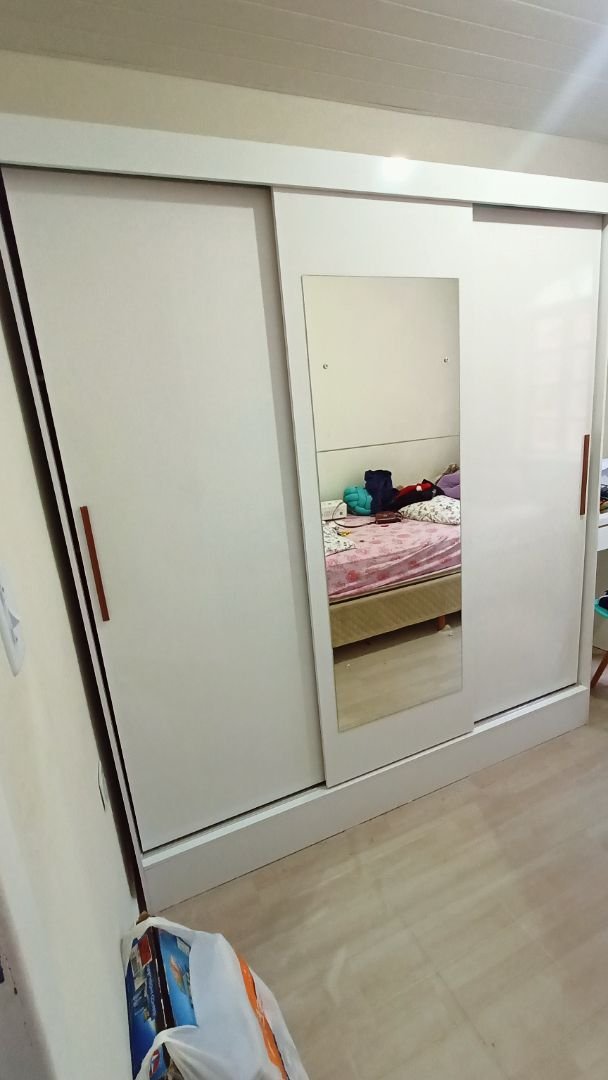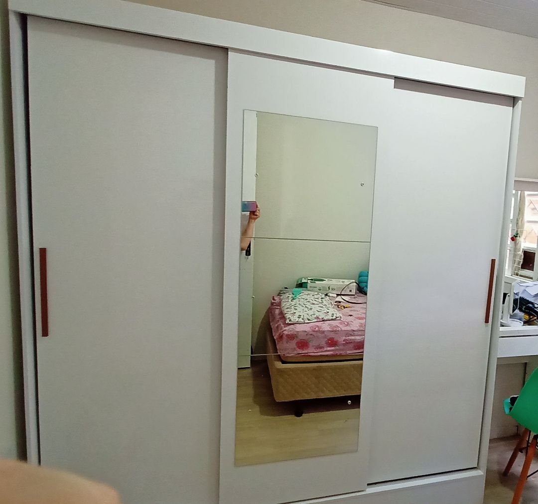 Seu design inteligente conta com 3 portas de correr com trilhos em alumínio, ideal para otimizar o espaço do cômodo, além de um espelho central que traz amplitude e praticidade.