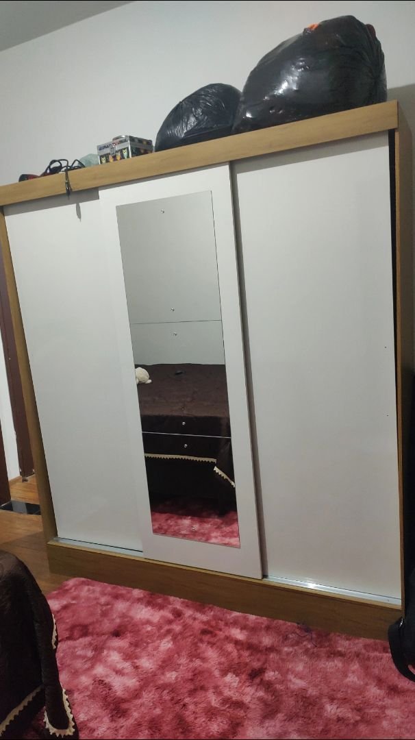 Guarda-Roupa Casal 100% MDF – 3 Portas de Correr e Espelho