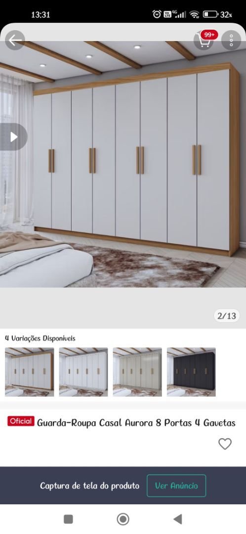 Guarda-Roupa Casal Aurora 8 Portas 4 Gavetas