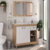 Armário Conjunto de Banheiro com Gabinete, Cuba e Espelheira 3 Portas Viena 80 cm