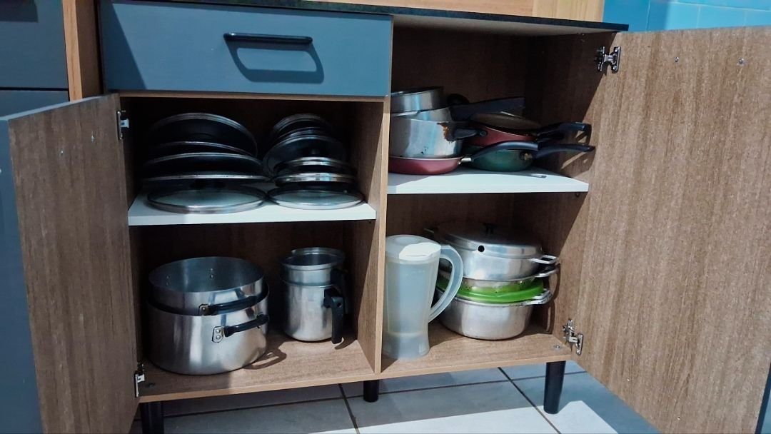 Com compartimentos bem distribuídos, é ideal para organizar panelas, louças, mantimentos, eletroportáteis e utensílios variados, mantendo sua cozinha sempre arrumada e com visual sofisticado.