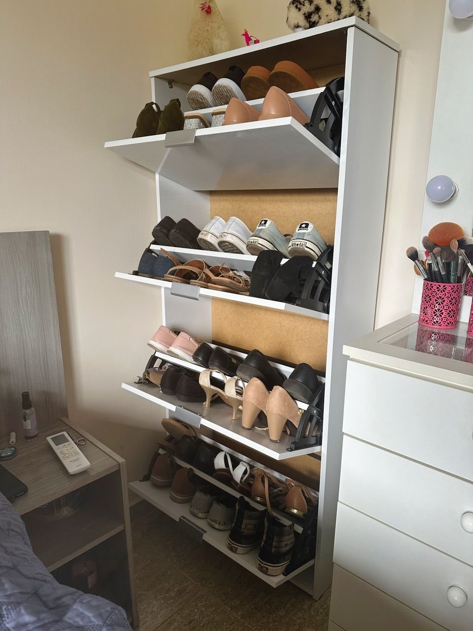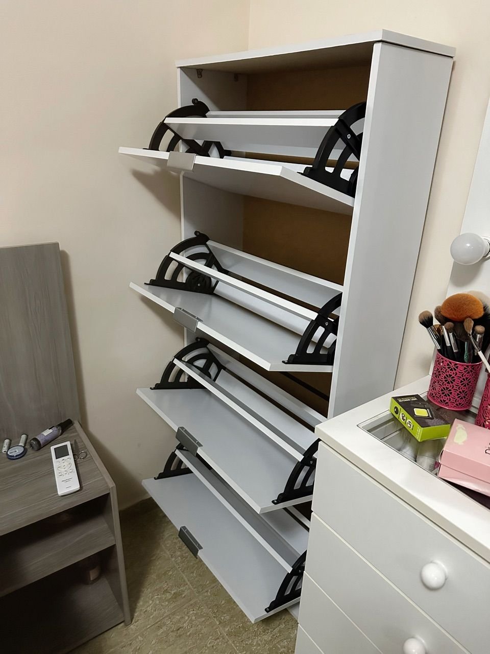 A Sapateira Safira é projetada para organizar calçados com praticidade em quartos, corredores ou closets. Com estrutura em MDF e design moderno, o móvel oferece funcionalidade e segurança para o ambiente, sendo indicada para calçados até o número 45 (BR).