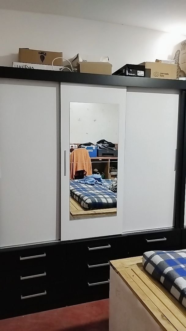 Sistema de Portas: 3 portas de correr com trilho inferior em alumínio e sistema soft de rolagem.