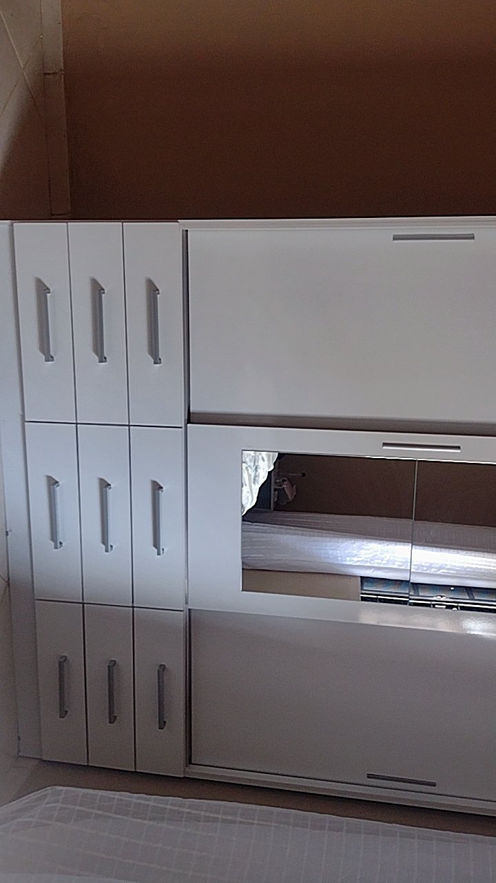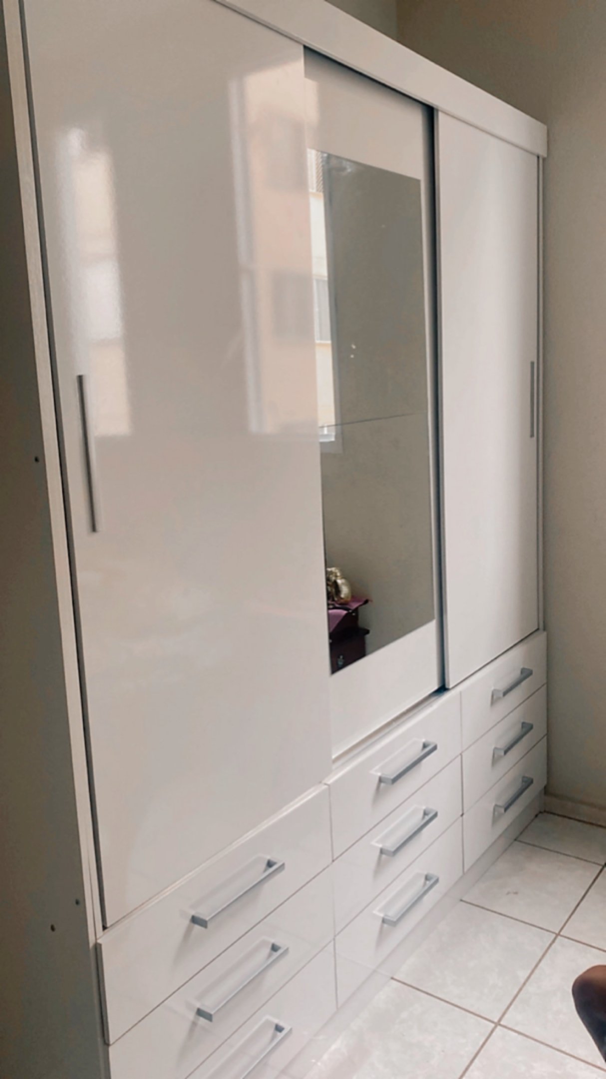 Sistema de Portas: 3 portas de correr com trilho inferior em alumínio e sistema soft de rolagem.