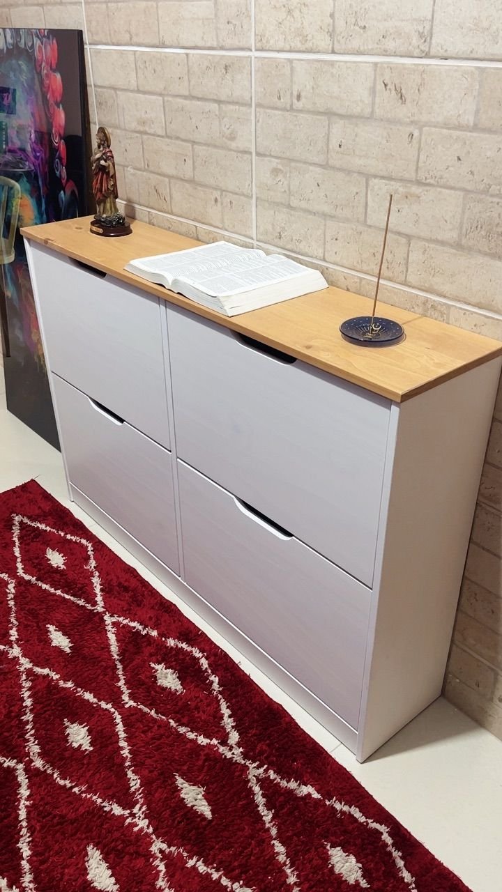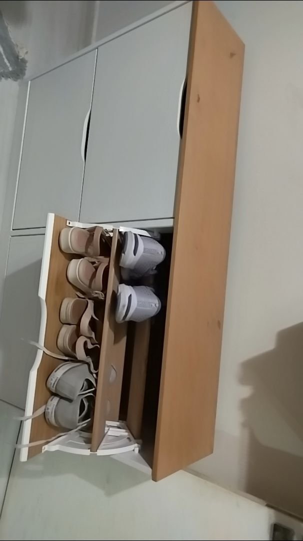 Produto bom de qualidade. Só de tamanho que eu achei pequeno e baixinho. Bom prender na parede pra não ficar tão baixo. E a pintura ficou um pouco a desejar. Mas o material é excelente e é bem bonita e funcional. Recomendo a compra. Dependendo do tamanho do tênis não cabe a não ser que empurre bem no fundo. Deixando o tênis um pouco amassado.