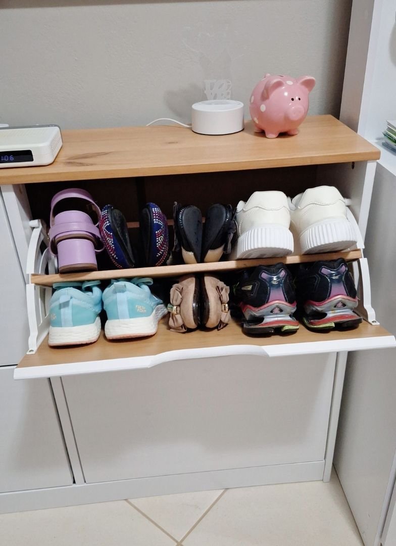 Perfeita! Amei a sapateira, ficou como eu imaginei. O material é muito bom, ela é leve, e se souber organizar os sapatos cabe bastante pares.