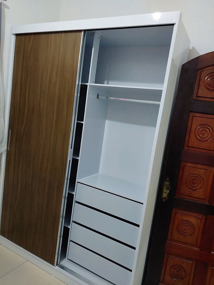 Sistema de Portas de Correr: Otimiza o espaço do quarto, pois não exige área livre para abertura das portas. Conta com deslizamento suave em trilhos metálicos de alta durabilidade.