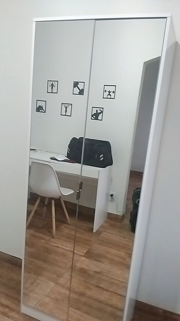 • Espelho Gigante (1,72m): A porta possui um espelho amplo que permite visualizar o look completo antes de sair de casa, dispensando a necessidade de um espelho avulso no quarto.
