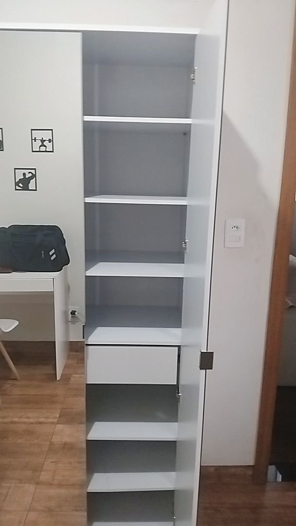 Este móvel é ideal para espaços verticais, como atrás de portas ou cantos de quarto.