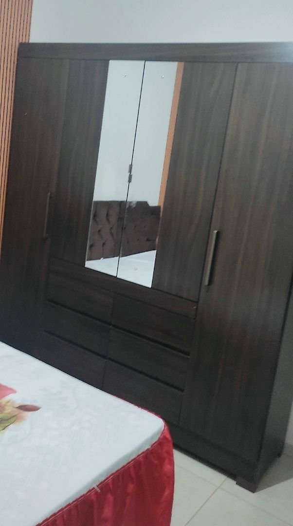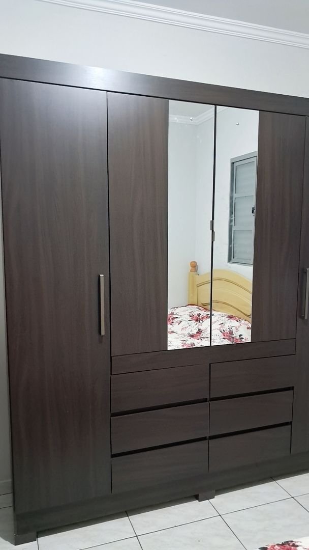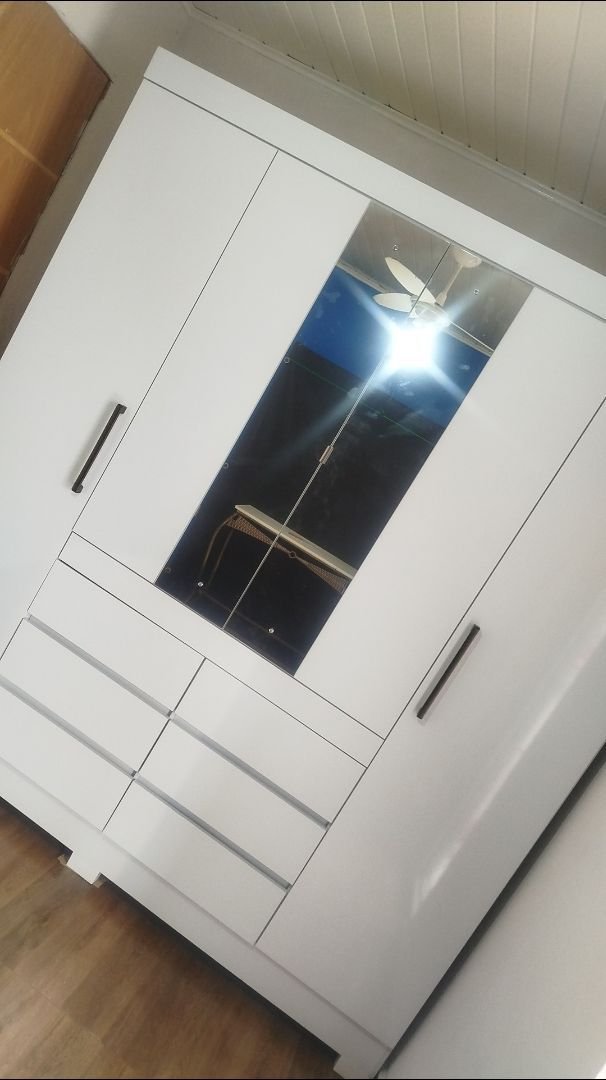 O guarda roupa é lindo demais demorou um pouco pra chegar mais valeu a pena a espera ele grande tem muitas repartições as gavetas são espaçosas vai caber muito coisa veio com algumas avarias mais e so passar o giz que vem pra passar fica perfeito