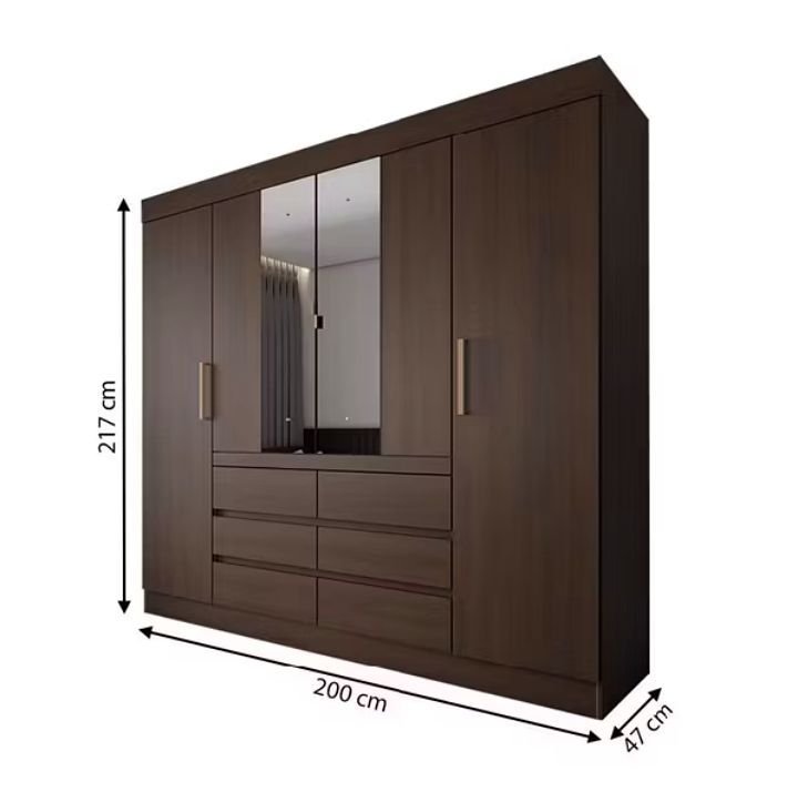Guarda-Roupa Casal Honey 4 Portas e 6 Gavetas com Espelho